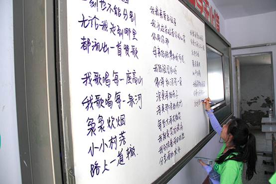 下午,实践团继续支教活动,经过上午欢乐愉快的游戏环节,孩子们和实践团的同学们都对下午的活动充满了期待。在实践团哥哥姐姐们的带领下,孩子们分成两个小队伍,为祖国成立七十周年献歌。经过两个小时的紧张练习,孩子们斗志满满,两个小队最后的演唱都非常顺利,杨木栅子中心小学的郑老师对孩子们的表演进行了点评,给予了高度的赞扬。最后,杨木栅子中心小学赵校长和同学们及实践团的成员们合影留念。