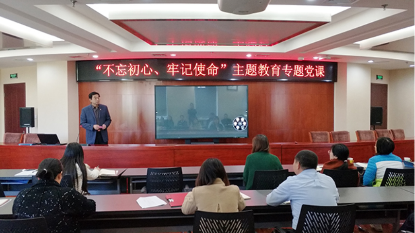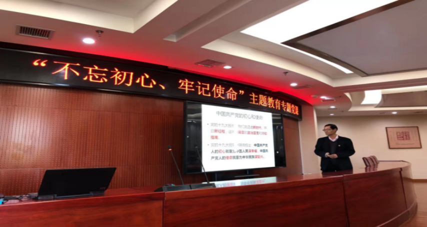 随后,潘金豹院长以“不忘初心,践行使命”为题,为党员们介绍了中国共产党的初心和使命,其中提到毛泽东思想指引党实现了中华民族站起来的使命,邓小平理论指引党实现了中华民族富起来的使命,习近平新时代中国特色社会主义思想指引党实现中华民族强起来的使命,希望党员们牢记中国共产党的初心和使命。潘金豹老师同时强调了主题教育活动的重要意义,希望教师能够认真履行自己的职责和使命,围绕学院的重点工作,发挥党员的模范先锋作用,建设和谐美丽植科。