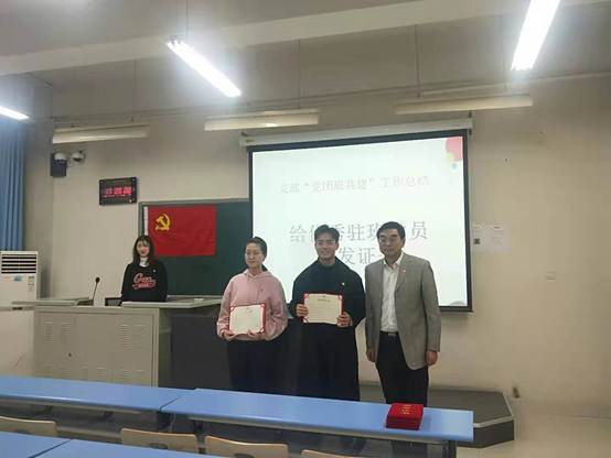 首先由孙路路书记介绍了此次党团共建活动的流程以及园艺本科生党支部近期工作进展情况。随后,由杨军书记带领全体党员重温入党誓词,引导学生党员,更好地悟初心、守初心、践初心。接着,支委赵瑞一介绍了上一年度党团共建活动的开展情况,杨军书记为优秀驻班党员孙嘉潞和王伟力两位优秀驻班党员颁发了荣誉证书,王伟力作为获奖代表发表了感言。党团共建活动能很好地带领团支部学习党的方针政策,培养积极分子,帮助班级同学解决实际困难等。鉴于党团共建活动的良好效果,党支部决定继续开展此活动,经支部多方考察,确定卢建烨、侯钰颖、张令超、李书涵4名同学作为新的驻班党员,由王绍辉书记和牛奔副书记为他们颁发聘用证书。侯玉颖作为新任驻班党员代表发表了感言。