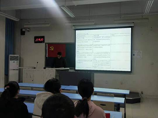 最后,杨军书记对本次活动进行了总结。杨书记强调作为大学生党员要树立正确的人生观、世界观、价值观,要对中国特色社会主义思想进行系统学习,懂得其真正内涵,并对党员们提出几点期望。希望我们将从身边向优秀党员学习的感性转变为真正有担当、有模范带头作用的理性;将入党的荣誉感转变为使命感、从做好人转变为做先锋、将理论付诸于实践,争取达到最高境界知行合一;从必然王国转变为自然王国,从内心真正的想要为人民服务!