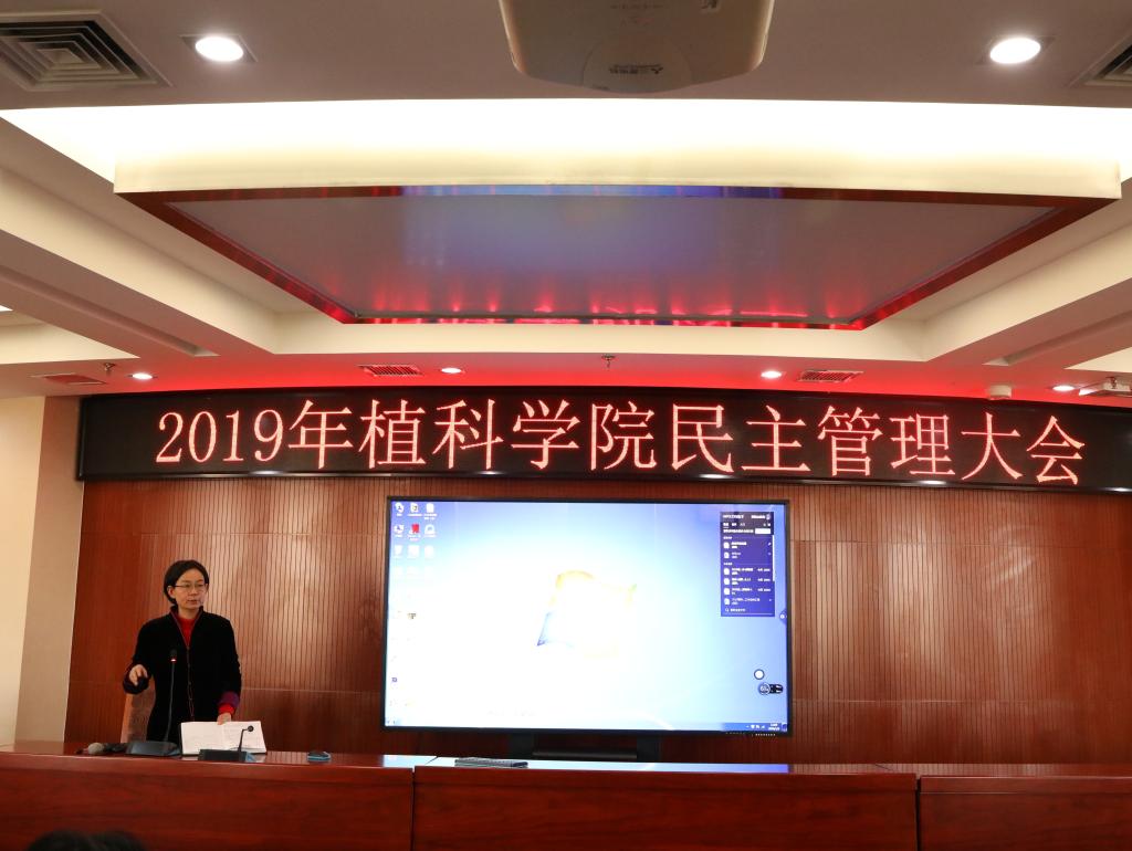 党总支书记王绍辉指出,民主管理大会是全院职工参与全院职工参与学院管理的重要体现,学院各方面成绩的取得离不开全院教职工的支持。学院班子将一如既往地坚持公开、公正、公平和透明的工作方式。她提出了三点要求,一要珍爱这个集体,植科学院的发展是几代人的努力,成绩来之不易;二要热爱这个大家庭,热爱工作,立德树人;三要关爱师生,想人所想,急人所急,共同营造一个温馨和谐的植科之家。