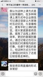 李润枝老师是植科学院农学系副教授,本学期承担《节水农业》、《种子加工贮藏学》、《种子生物学》等课程。面对线上教学任务,李老师没有退缩,迎难而上,积极承担“云”课堂教学任务,精心设计线上教学环节。下面是李润枝老师对线上教学的心得分享。