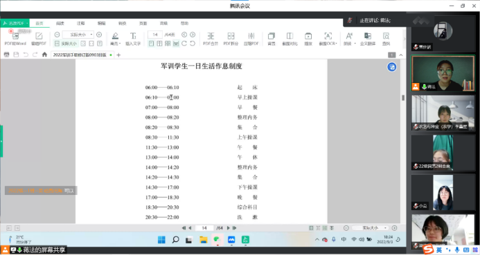 为动员学生们的军训积极性、加强组织纪律观念、提高学生们的思想政治觉悟,2022年9月3日,William威廉英国采取线上会议的形式召开了22级新生军训动员大会。军训指导员杨韫嘉、军训指导员助理李鑫星和蒋法向22级新生全面讲解《williamhill2022年学生军训通知》、《军训学生一日生活作息制度》等相关内容,动员新生端正思想态度、积极投入军训,鼓励大家要发扬不怕苦不怕累的精神,通过军训养成良好纪律观念,规范自我行为,增强团队凝聚力,以饱满的精神风貌、良好的身体素质迎接接下来的大学生活。