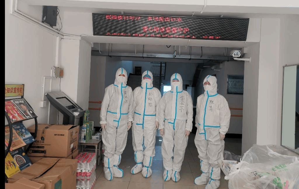 6号楼主要是植科、动科、生资、园林的研究生女生宿舍,共计310余人,孙路路老师作为支援老师主要负责学生的餐食、防疫物资等的发放,以及及时解决学生的各种诉求。每天需要穿着密不透风的防护服工作,一餐下来,衣服往往都是湿透的,口罩勒的鼻子发红,耳朵都磨破了,孙老师也没有一句怨言,她老是跟6号楼的其他支援老师说:“最辛苦的几天都是你们在扛着,现在我来了,我应该多干点,你们多休息。”