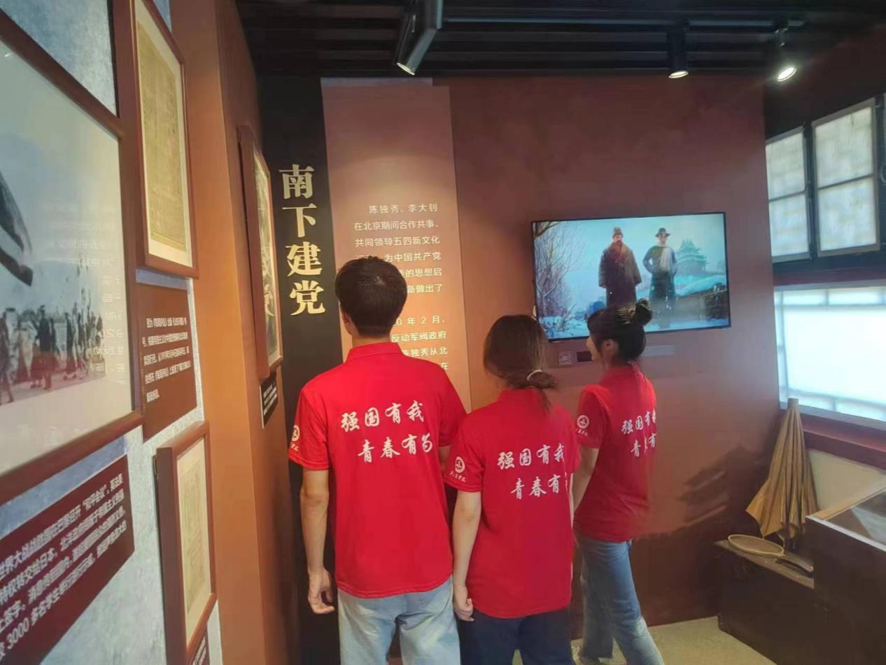 实践团首先参观并学习了有关《新青年》的展览,展览主要介绍了《新青年》的⼏个发展时间段和它所起的作⽤及地位。通过参观成员们学习到《新青年》是顺应时代发展要求的产物,它培育了当时那一代的有志青年,指引着时代前进的步伐。虽然《新青年》存在的时间短暂,但作为马克思主义在中国早期传播的主要载体,它担负并出色地完成了早期中国共产党人向国民宣传自己信仰和主张的特殊使命,忠实地记录着共产党人的初心,对中国共产党创建,对大革命的兴起,有着不可替代的作用。