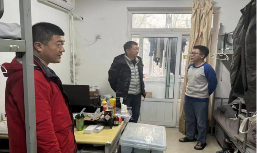张卿深入宿舍,检查各项情况,并与学生恳谈交流,了解同学们近期生活和学习情况。亲切叮嘱离校同学注意离校与返校途中的交通安全,留校同学则应注意留宿安全问题。