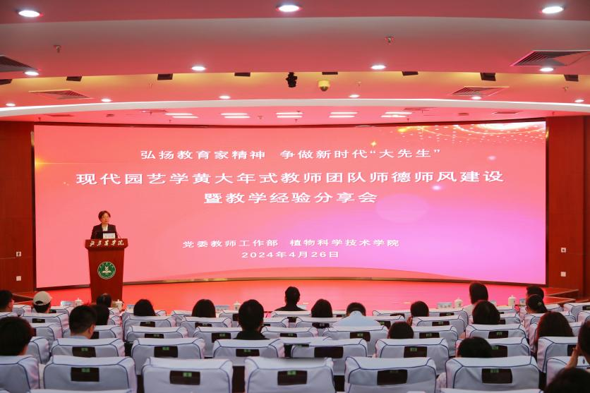 为深入学习贯彻习近平总书记关于教育的重要论述,大力弘扬教育家精神,加强学校师德师风建设,助力高素质教师队伍建设,4月26日下午,学校以“传承黄大年精神,兴教强农建新功”为主题,举办现代园艺学黄大年式教师团队师德师风建设暨教育教学经验分享会。党委副书记、院长、现代园艺学黄大年式教师团队负责人段留生,党委副书记仲丛生出席会议并讲话,会议由植科学院党委书记王绍辉主持,学校相关职能部门负责人,植科学院、生资学院、园林学院党政领导及专任教师参加。