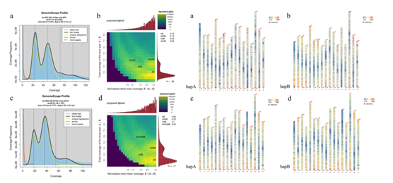 红富士苹果是全球水果行业中最重要和最受欢迎的经济作物之一。利用PacBio HiFi和Hi-C测序结合的组装策略,组装了高质量的‘红富士’单倍型基因组,基因组大小分别为668.7和668.8 Mb, contig N50大小分别为34.1Mb和31.4 Mb,在两个单倍体基因组中共鉴定出95,439个蛋白质编码基因,BUSCO评估得分为98%。高质量的单倍型基因组对于揭示等位基因表达的变化,推进品质改进和育种工作至关重要。