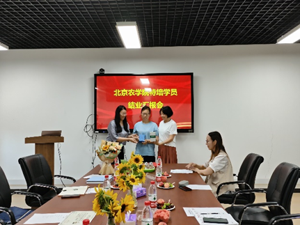 王绍辉书记代表学院对特培学员经过一年努力取得的成绩表示热烈的祝贺。希望学员能坚定理想信念,回到工作岗位后能够将学到的专业知识和技能运用到实际工作中,为当地的乡村振兴尽一份力,希望学员今后与学院、导师保持联系,开展合作、延续友情。