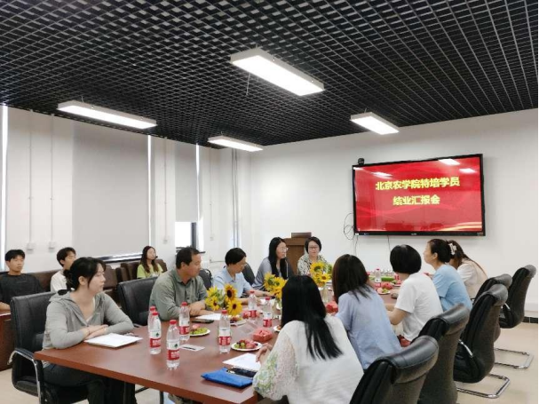 特培学员周贵兰详细汇报了学习情况和取得的成绩,她表示一年的学习收获颇丰,不仅系统学习了作物生产的理论课程,而且深度参与了科研项目的工作,通过理论和实践结合,在各方面得到了很大的提升,争取将学到的知识和技能用在实际工作中,特别感谢学校、学院和老师们的培养和指导。