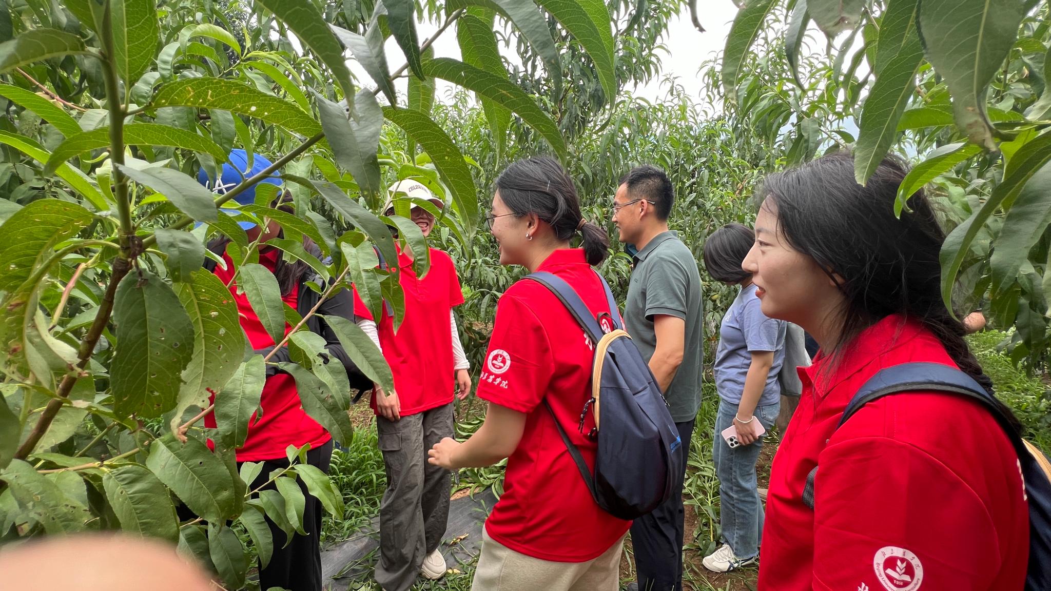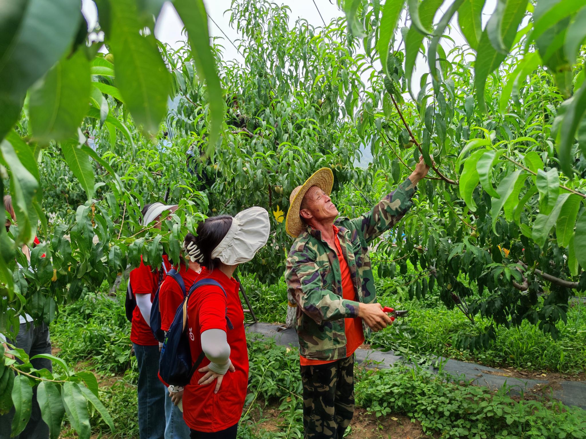 正值夏季剪枝的时间,实践团在博士农场张继福老师带领下学习桃树夏季修剪技术。通过实践学习,同学们将课堂所学与产业实践紧密结合,深刻的了解了夏季桃园抹芽、摘心、扭梢、疏枝、捋枝、拉枝等整形修剪技术和主要病虫害绿色防控技术,也在“自找苦吃”的田间地头感受到了科技对果树产业高质量发展的支撑作用,增强了学农爱农和强农兴农的使命担当。