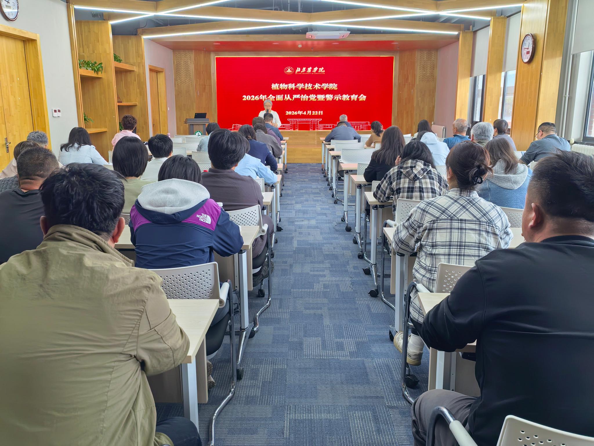 4月22日,学院召开全体教职工大会,传达学校2026年全面从严治党工作会暨警示教育大会精神,深化以案促改,对学院全面从严治党工作进行部署,持续推进学校全面从严治党向纵深发展。学院党委书记袁中立主持会议,全体教职工参会。