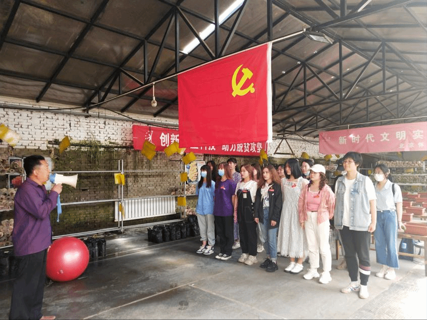 首先,党支部书记李玮瑜带领同学们来到月亮湖生态庄园,参观蘑菇养殖棚和多肉精品棚。在参观过程中,讲解员刘老师向同学们讲述革命英雄刘玉林的英雄事迹,同学们为刘玉林同志的坎坷求学路和为革命事业英勇就义的事迹而感动。