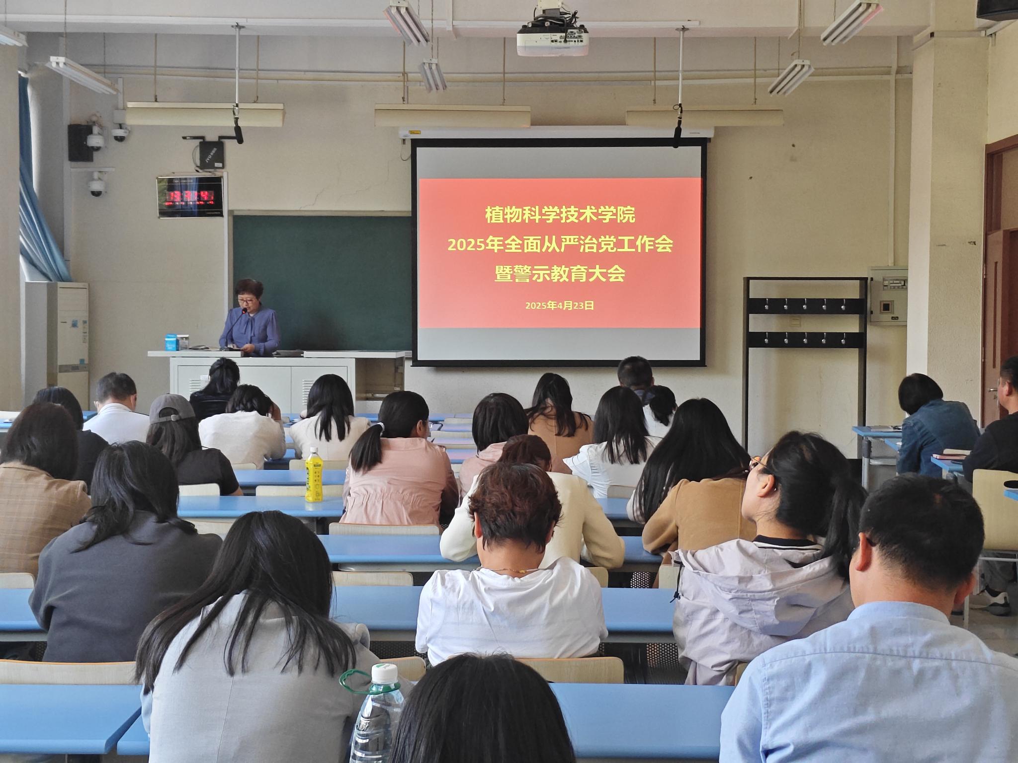 4月23日,植科学院召开2025年全面从严治党工作会暨警示教育大会,会议由学院党委书记袁中立主持,全体教职工参会。