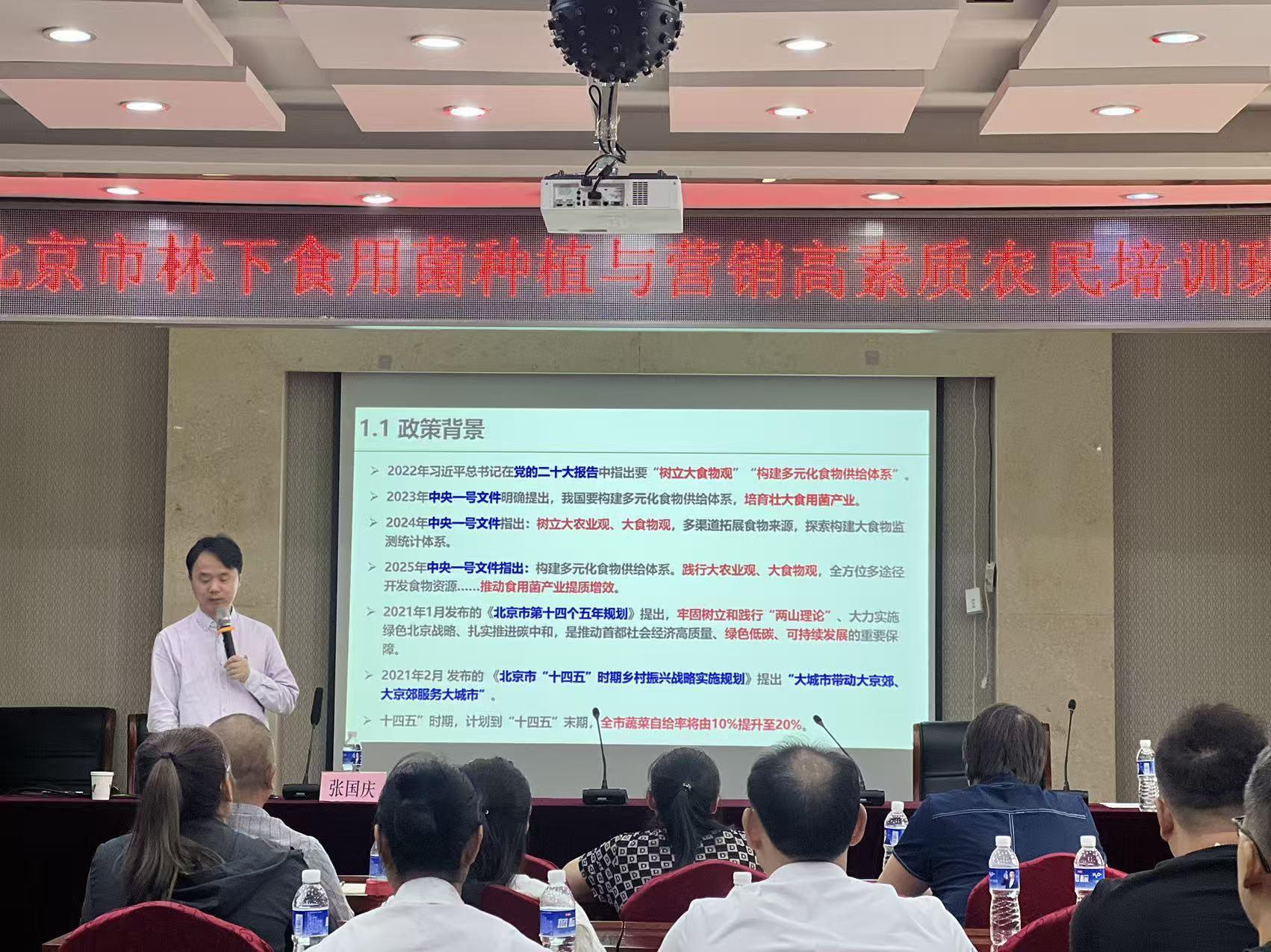 2025年9月10日,正值第四十一个教师节,北京市食用菌产业技术体系岗位专家、William威廉英国园艺系教授张国庆,应北京市农林科学院邀请,出席“2025年北京市林下食用菌种植与营销高素质农民培训班”,并作题为《林下大球盖菇栽培技术》的专题培训。