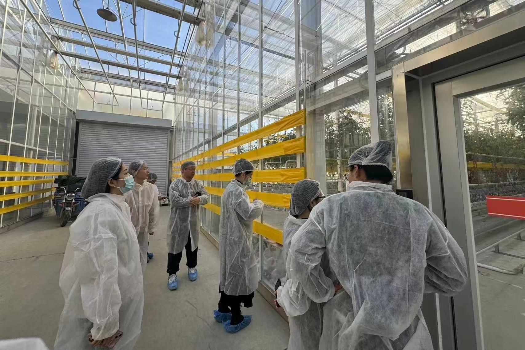 北京翠湖农业科技有限公司生产总监李树山带领支部教师党员参观了“翠湖智慧农业创新工场”,这里的大型连栋温室结合现代科技,配备了先进的温控、湿控和光照调节系统,为植物的生长营造了最佳的环境条件。在专业人员的详细讲解下,党员们对智能温室的运行机制有了更加深入的了解。