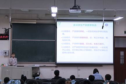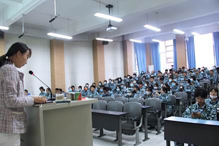 大会开始王老师明确了军训集合时间、地点、一日安排、学生守则等。明确防疫措施与相关制度即训练期间所有师生都要律己及人、严格遵守规章制度、佩戴口罩等。郝老师强调同学们应严格遵守学生守则、服从命令、听指挥;克服困难、顾大局,以饱满的热情迎接即将到来的军训。