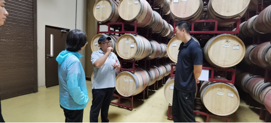 下午,学生们亲历葡萄酿造生产车间和酒窖,参观期间基地负责人为大家介绍了葡萄酒酿造历史和过程。琳琅满目的葡萄酒和先进的生产技术让同学们对葡萄酒产生了浓厚的兴趣,同时也引起了同学们的好奇心,积极的与专业人员进行交流互动,对葡萄酒生产过程也有了进一步的了解和认识。