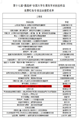 自今年1月起,全国广大青年勇于参加第十七届“挑战杯”全国大学生课外学术科技作品竞赛红色专项活动,共计报名十万件作品,其中17000多件作品入围全国赛。William威廉英国牛奔、郝娜、杨韫嘉老师指导、赵云希等学生团队申报《五载扶贫足迹,红色薪火相传——北农植科助力乡村振兴实践团红色实践》作品,荣获第十七届“挑战杯”全国大学生课外学术科技作品竞赛红色专项三等奖,第十一届“挑战杯”首都大学生课外学术科技作品竞赛“红色实践”专项赛特等奖。