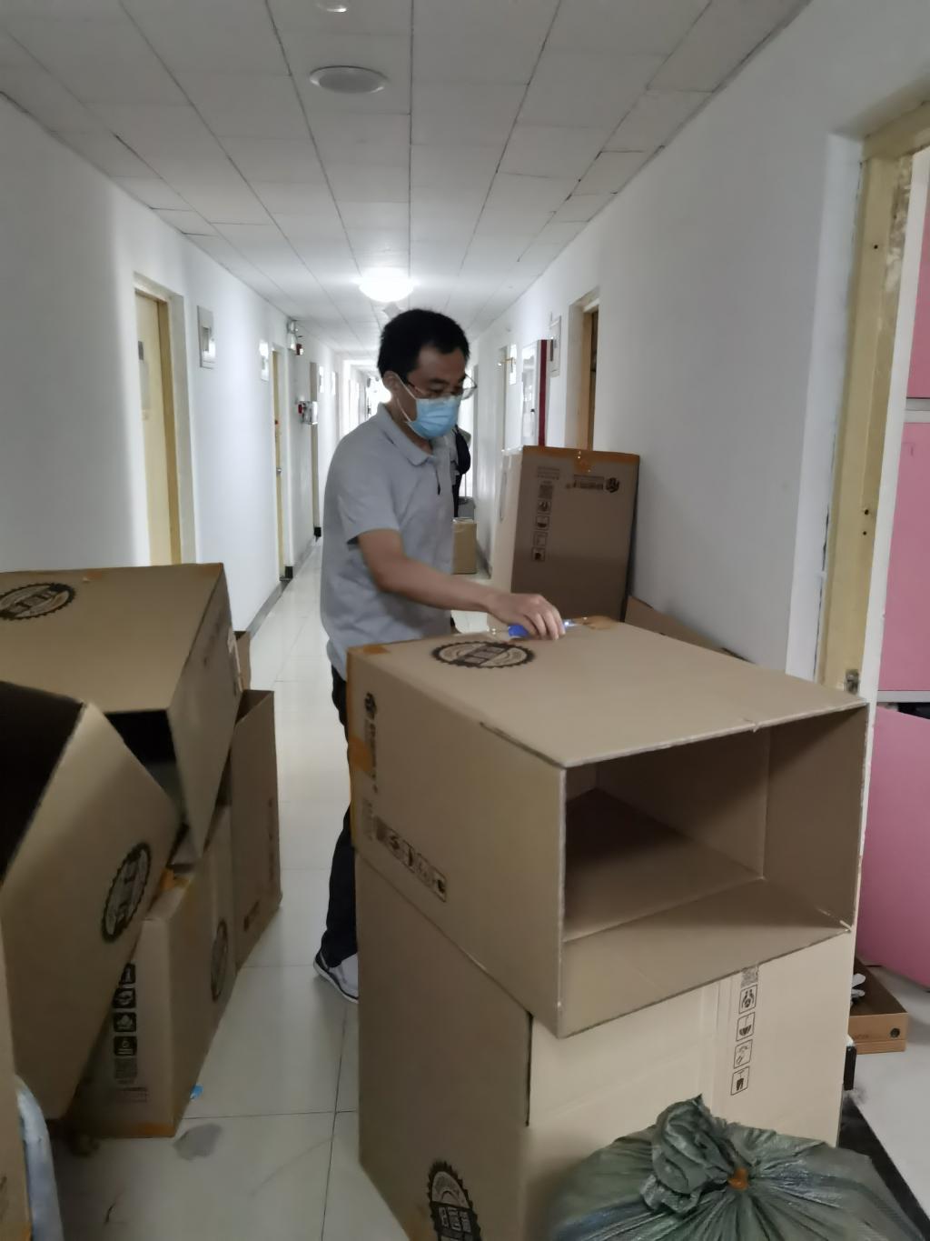 学院35名党员老师、班主任、辅导员积极投入到 毕业生行李打包邮寄工作过程中,通过视频连线整理每名学生的物品,在收拾行李的过程中做到了一组一寝,一人一问。左手举着手机,右手挑拣物品”成了老师们的工作写照。