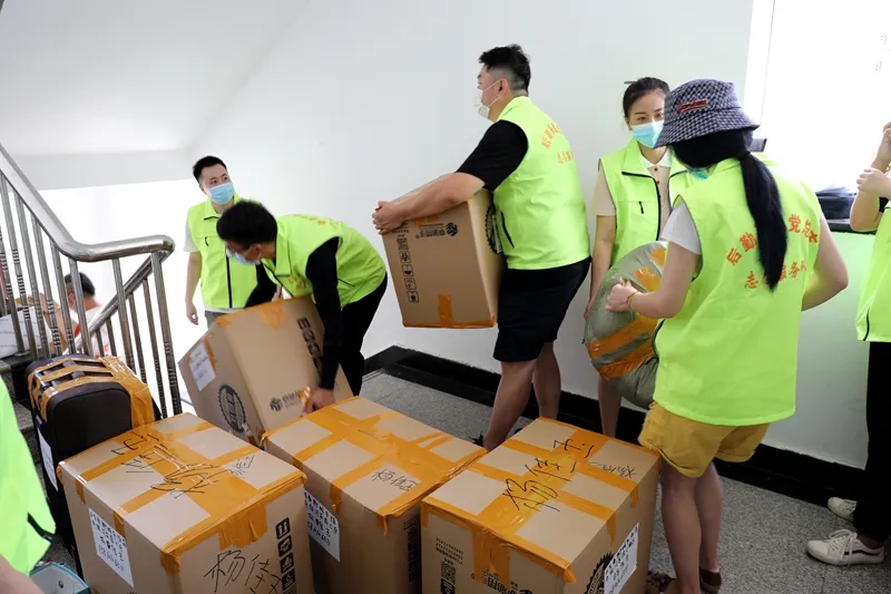 在学生处、后勤基建志愿服务队、公寓工作人员的协同下,有序地推动了毕业生行李打包工作,大大提高了邮寄的效率。他们不顾天气炎热、忙碌于校园的各个角落,为毕业生提供最好的服务。